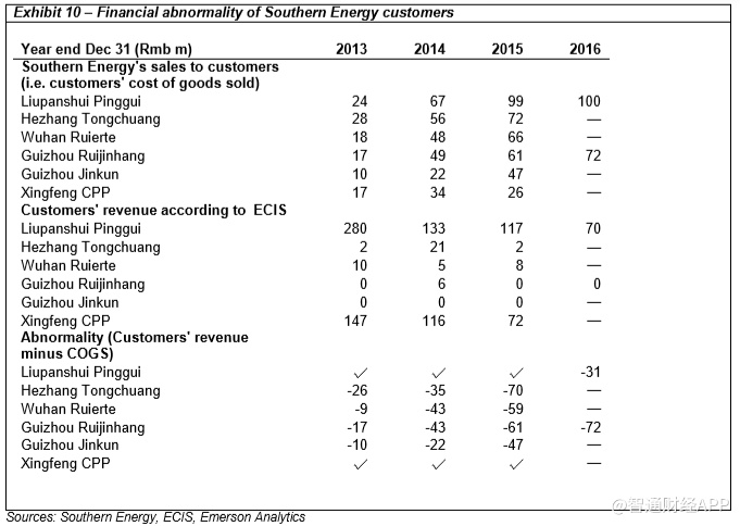 上面的图表10显示,六盘水苹贵在2013-15年间的营收高于南方能源生辰已经实现的销售额。是否意味着六盘水苹贵是南方能源的一个真诚的客户,而不存在任何不法行为呢?远非如此。