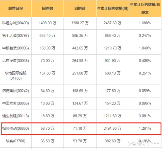根据智通财经APP统计数据显示,截至今年7月10日,指尖悦动的年累计回购数已达2491.80万股,占其总股本的1.26%。