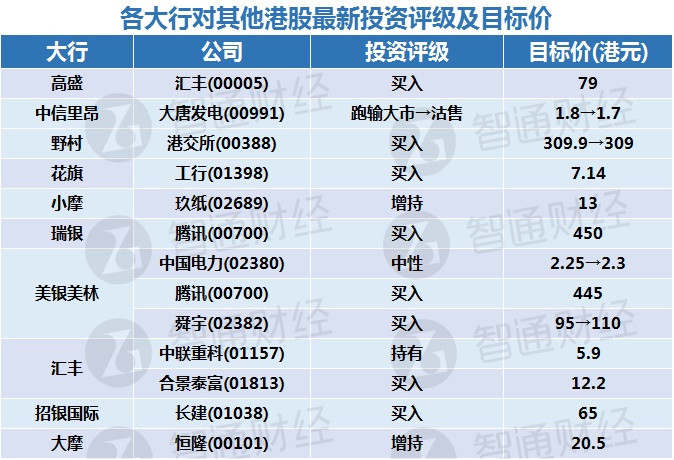 四、各大行对友邦(01299)最新投资评级及目标价:
