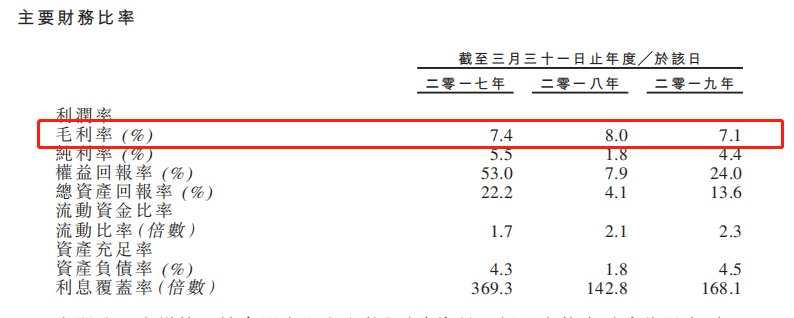 截至2017年、2018年及2019年3月31日止年度,德益控股的毛利率分别约为7.4%、8.0%及7.1%。德益控股在2017年3月31日止年度到2018年3月31日止毛利率增加乃由于楼宇建筑服务较RMAA附有较高的收益,2018年3月31日止年度到2019年3月31日止毛利率减少乃主要由于2017年A8项目和2018年A9项目获取相对低的收益。