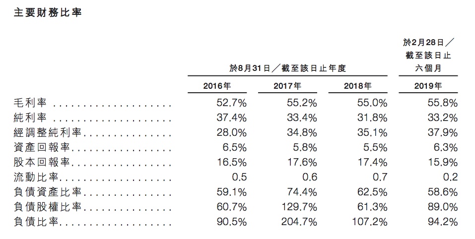 前两次冲刺港交所,市场较为关注的是公司负债比率方面,根据最新的招股书数据显示,截至2019年2月28日止6个月,该公司负债比率高达94.2%。