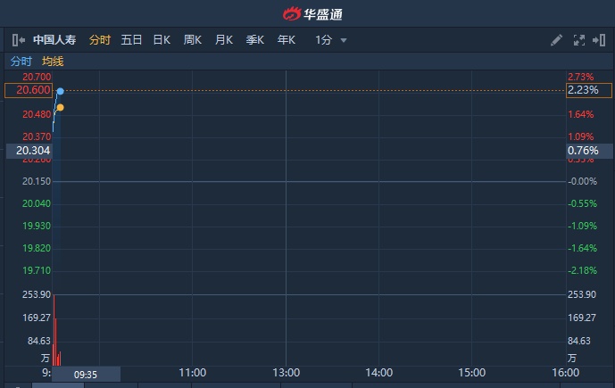 智通财经APP获悉,昨日中国人寿发布中期业绩预增公告,称与2018年同期相比,预计增加约人民币188.86亿元到人民币221.71亿元,同比增加约115%到135%。截至9时32分,涨2.23%,报20.6港元。成交额1.12亿港元。