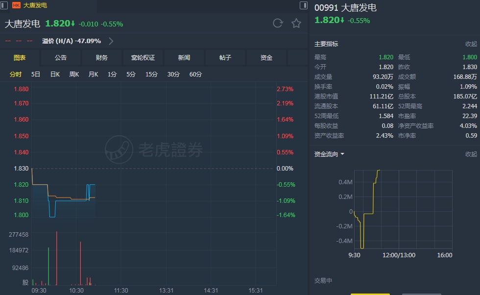 智通财经APP获悉,花旗发表研究报告表示,予大唐发电(00991)“中性”评级,目标价2.25港元。
