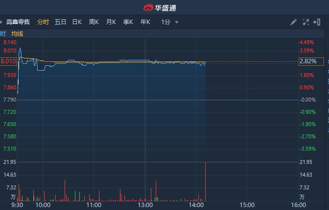 智通财经APP获悉,瑞信将高鑫零售(06808)评级由“跑输大市”上调至”中性“,目标价由6.5港元升至8.7港元。截至发稿,涨2.7%,报8.0港元,成交额1914.39万港元。