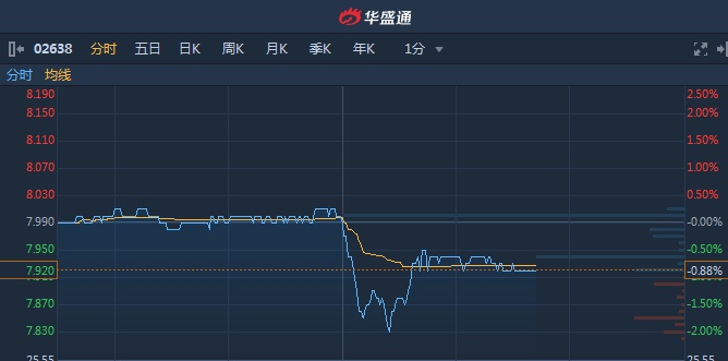 智通财经APP获悉,港灯-SS(02638)午间发布中期业绩,股东应占溢利同比减少27.8%至7.09亿港元。不及市场预期,午后曾跌近2%。截至14时41分,跌0.88%,报价7.92港元,成交额2545万。