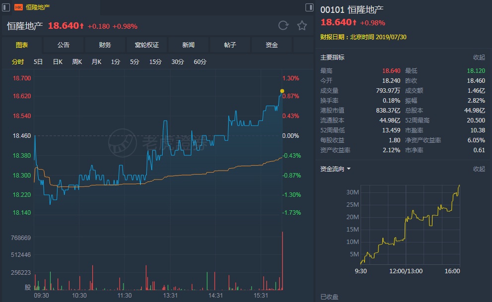 智通财经APP获悉,大摩发表研究报告指出,由于缺乏物业销售,恒隆地产(00101)上半年每股基本盈利年同比下降4%至50港仙,但表现仍高于该行预期,这是由于其利息开支减少所致。公司中期息维持每股派17港仙,符合预期。该行重申其“增持”投资评级,目标价20.5港元。