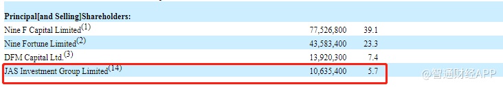 但智通财经APP发现,在此次公布的招股说明书中,出售ADS的股东包括投资机构JAS Investment Group Limited,其持有1062.54股股份,占上市前股份总数的5.7%,而JAS Investment Group Limited则由分众传媒董事长江南春全资拥有。