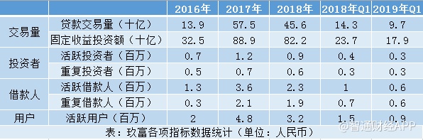 活跃用户则包括借款人和投资者,从数据来看,借款人和投资者数量均有不同程度的下滑。2018年时,年度活跃投资者数量同比下滑25%,年度借款人则下滑36.11%。至2019年一季度时,活跃投资者数量下滑25%,年度借款人则下滑14.29%。