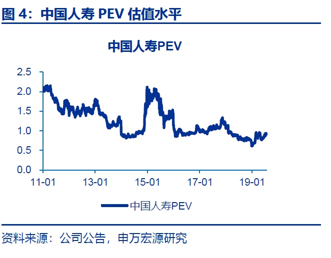 上半年权益市场量价齐升,长端利率低位震荡,投资收益超预期带动净利润快速增长。根据公司公告,“在既定战略资产配置策略安排下,及时布局,主动操作,叠加2019年上半年境内股票市场大幅上涨影响,公开市场权益类投资收益同比大幅增加”。2018年下半年新任管理层履新以来,公司对净利润和价值指标口径的考核占比达到40%和30%,投资部门作为公司净利润重要贡献逐步强化市场化考核,优胜劣汰下,投资收益成为全年利润超预期表现的基石。1H19沪深300指数上涨27.1%,上证50上涨27.8%,10年期国债到期收益率从上年末的3.23%年内最低下降至3.07%附近,半年末回升至3.23%,虽然对当年新增再配置资产投资收益产生压力,但预计大幅提振交易性债券投资收益。我们预计,2018年公司实现投资收益+公允价值变动合计达1645.44亿元,同比大增59.4%。
