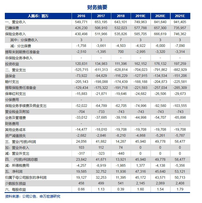 所得税新规返税一次性影响“空中加油”,51.54亿元非经常损益带动归母净利润加速上升。根据5月29日财政部发布的《关于保险企业手续费及佣金支出税前扣除政策的公告》,人身险公司的手续费及佣金支出与当年保费收入扣除退保金的税前可抵扣上限比率由10%大幅提升至18%,并且超过部分允许结转以后年度扣除。公司2018年这一比率为14.9%,我们预计19年至21年这一比率分别为16.2%、17.2%和17.2%。受益新规,我们预计19年公司合并报表实际所得税为-13.77亿元,利润总额和归母净利润同比增速分别为230.0%和296.4%。
