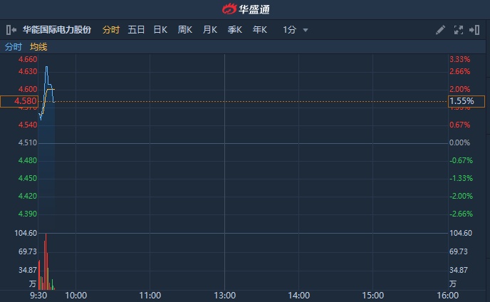 智通财经APP获悉,华能国电(00902)发布盈喜称,中期纯利34.42亿元人民币,同比增长98.8%。截至9时40分,涨2.22%,报4.61港元,成交额2575.21万港元。