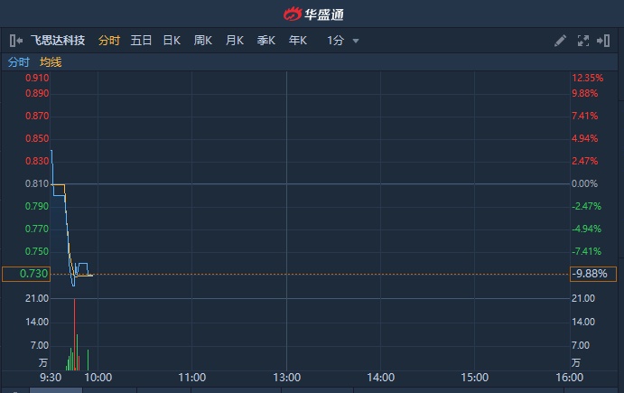 智通财经APP获悉,飞思达(01782)发盈警,预计中期净利同比跌40%。截至发稿,跌9.88%,报0.73港元,成交额44.95万港元。