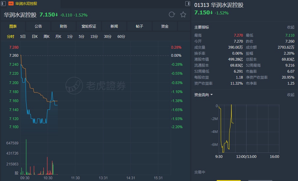 智通财经APP获悉,野村发表研究报告表示,由于季节性需求上升以及水泥价格稳定,预期华润水泥控股(01313)第二季纯利将达22亿元人民币,按年持平,超过市场预估的18亿元人民币,并扭转首季17%的跌幅。华润水泥生产成本低、资产负债表改善,加上股息收益率高,股份具防守性,该行维持其“买入”评级及目标价9.8港元。