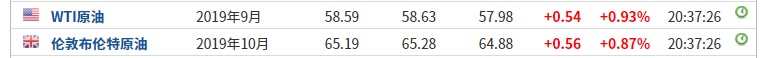 截至发稿,WTI原油涨0.93%,报58.59美元/桶。布伦特原油涨0.87%,报65.19美元/桶。