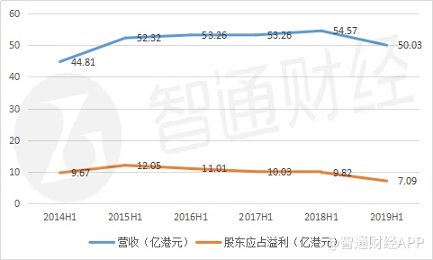 至于港灯未来的股价、业绩及派息还会不会保持如此稳定,相信很多投资者不敢笃定。因为从港灯近期公布的2019年中期业绩报告显示,公司营收下滑了8.32%至50.03亿元,公司股东应占期内溢利同比减少约27.8%至7.09亿元。由于利润下滑,公司每股派息由上年同期的19.92港仙,下降至15.94港仙。