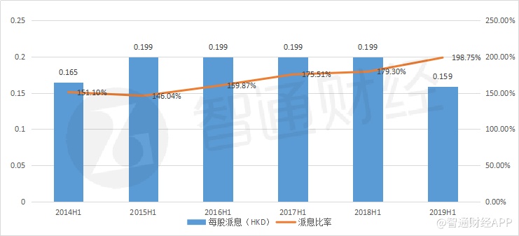 三是派息,港灯历年中期财报显示,公司近6年个财年的中期派息比率均超过150%,其中2014年中期至2018年中期每股派息金额均为19.92港仙,同样担得起一个稳字。