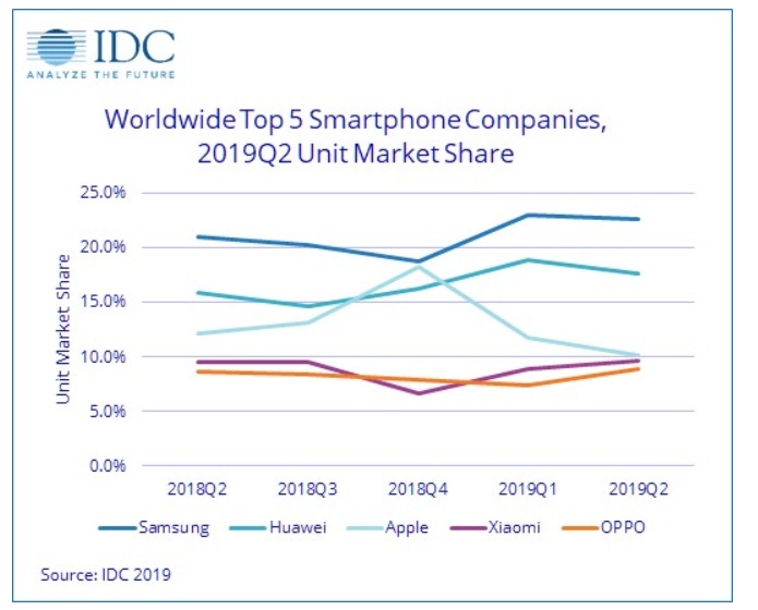 对于苹果的表现,IDC在报告中指出,如果他们不能积极调整iPhone的售价和创新,那么市场份额还会进一步下滑,下一季度可能就会降低至10%以下。