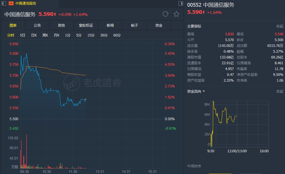 智通财经APP获悉,大摩发表研究报告称,中国通信服务(00552)毛利率压力已于股价中反映(股价从高位调整逾30%),将该股评级由“与大市同步”升至“增持”,目标价由7.5港元降至7港元。