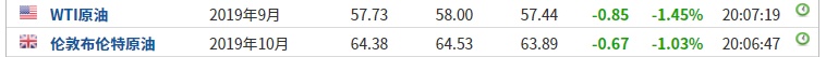 需求疲软、经济不确定性以及2020年预期的供应过剩让油价难以上涨。截至发稿,WTI原油跌1.45%,报57.73美元/桶。布伦特原油跌1.03%,报64.38美元/桶。