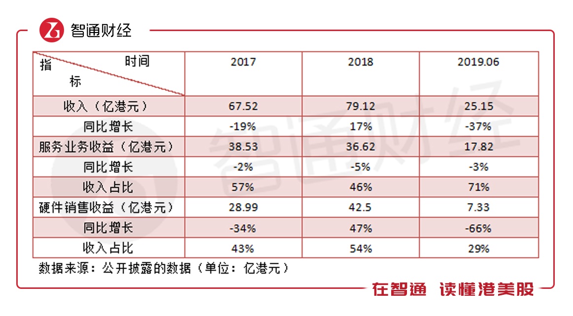 该公司的收入波动较大,2017年及2019年上半年收入均双位数下滑,主要原因均是硬件板块影响,2018年硬件收益结束往年下滑趋势,且增长幅度较大,才使得整体收益实现正向增长。