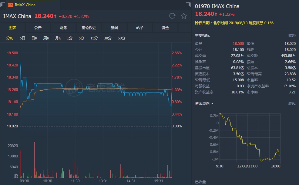 该行表示,IMAX中国上半年收入年增长15%,符合该行预期。经调整每股盈利高于该行预期6%,主要是受到网络业务毛利改善所致。尽管行业表现疲弱,但公司的票房在上半年增长24%,表明高端票房的需求弹性及其有效的电影选择策略。期内网络业务的毛利率由去年同期的72%扩大至75%,主要是受到共享模式下的经常性收入所推动。