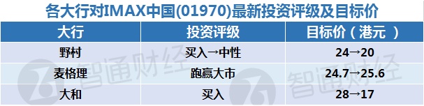 一,各大行对IMAX中国(01970)最新投资评级及目标价: