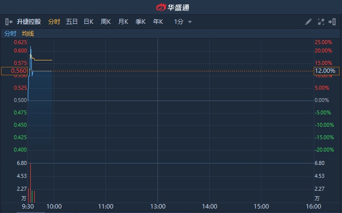 智通财经APP获悉,升捷控股(02340)昨日发布公告称,该集团预期于2019年中期净利较2018年同期大幅增加。受消息影响股价逆市上扬,最大涨22%,截至发稿,涨12%,报0.56港元,成交额7.62万港元。