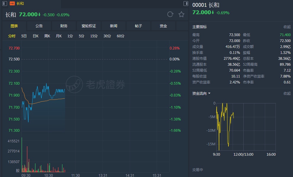 智通财经APP获悉,野村发表研究报告称,长和(00001)公布的中期业绩与该行及市场预期一致,纯利年增长2%,派息则持平。该行认为长和过去一个月股价下跌6.5%已经反映上半年业绩如预期般偏软,维持其“买入”评级及目标价126港元。
