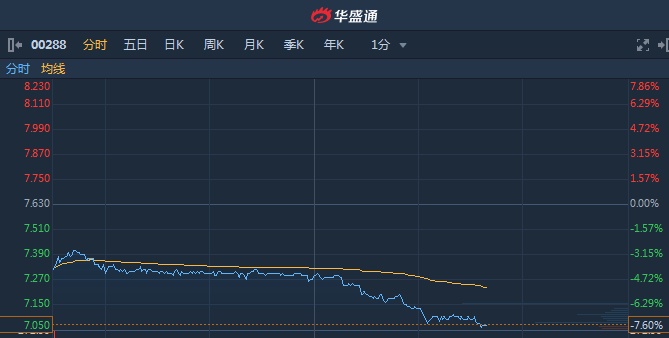 港股异动︱万洲国际(00288)午后跌幅扩大至7.7% 暂领跌蓝筹