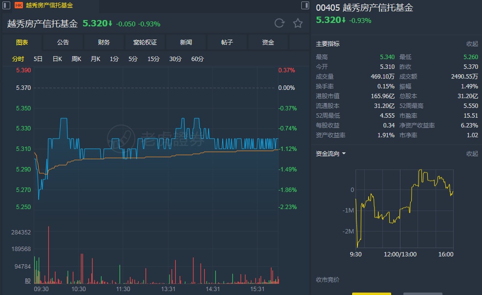 智通财经APP获悉,大和发表研究报告指出,越秀房产信托基金(00405)租金收入平稳,旗下广州国际金融中心今年上半年租金收入年增长1.1%,预计公司会继续提高办公室租金。该行重申其5.45港元目标价,维持“持有”投资评级。