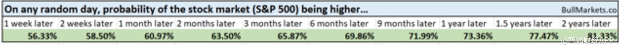 *这是美国股市在任何一天、一周或一个月内上涨的随机概率。