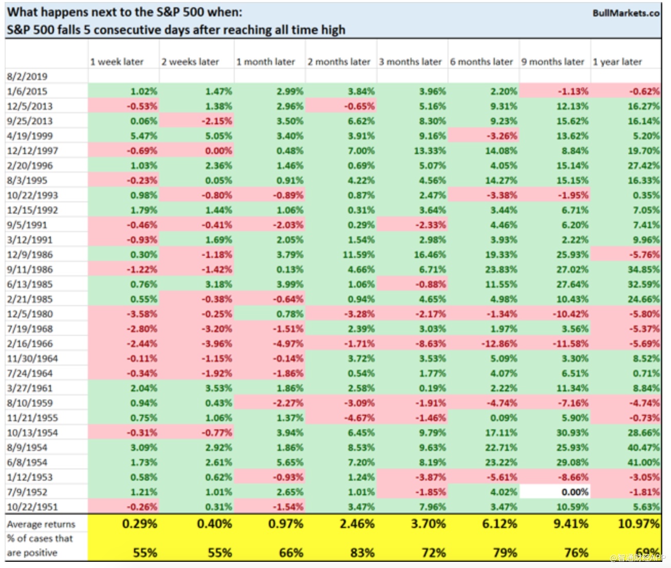 当过去发生这种情况时,标普500在未来2-5年的平均收益为负值。