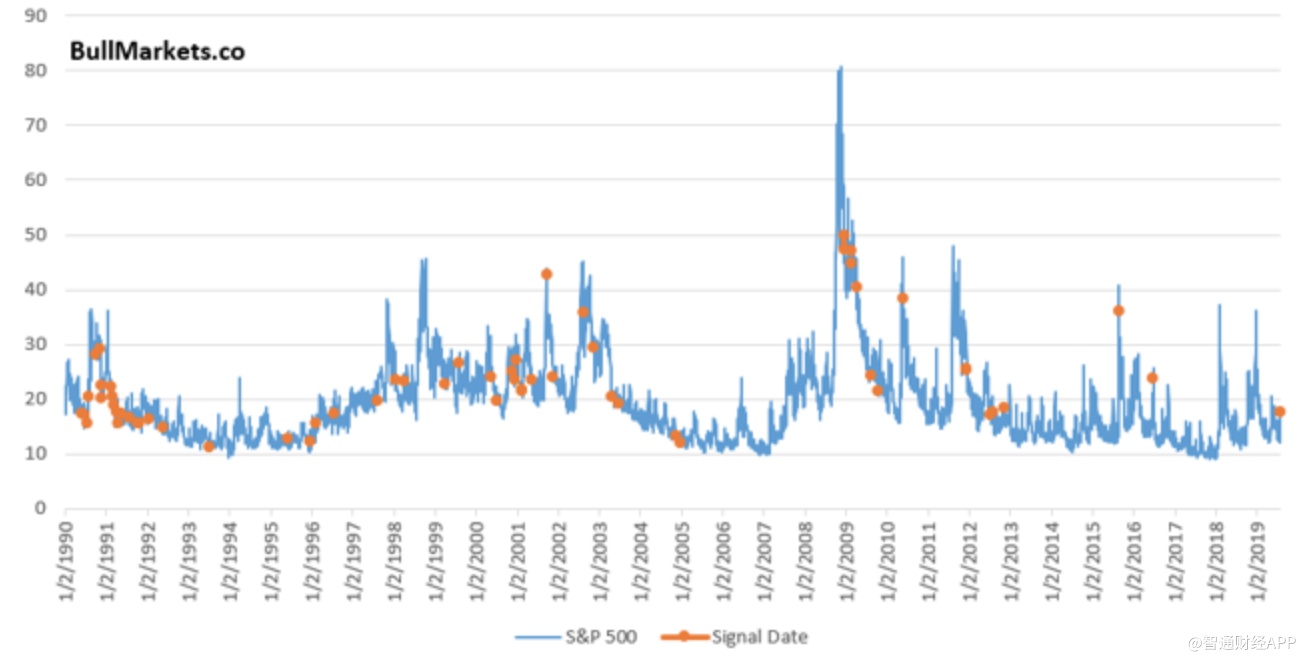 当股市第一次开始下跌时,波动率指数往往会爆炸。例如,如果标普下跌-1%,恐慌指数可能反弹15-20%。