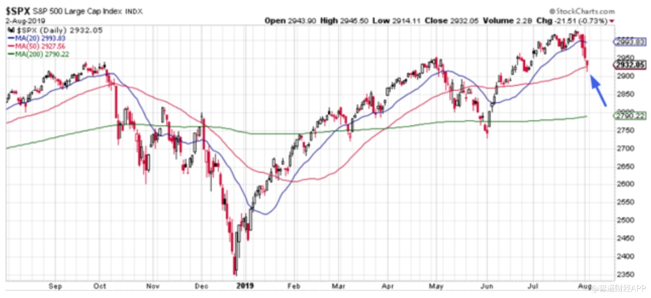 标普500跌到了其20日均线以下,目前正处于50均线。