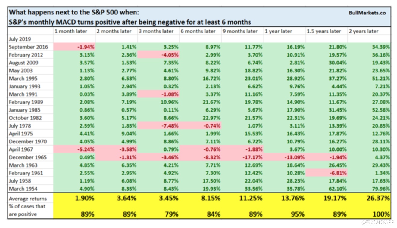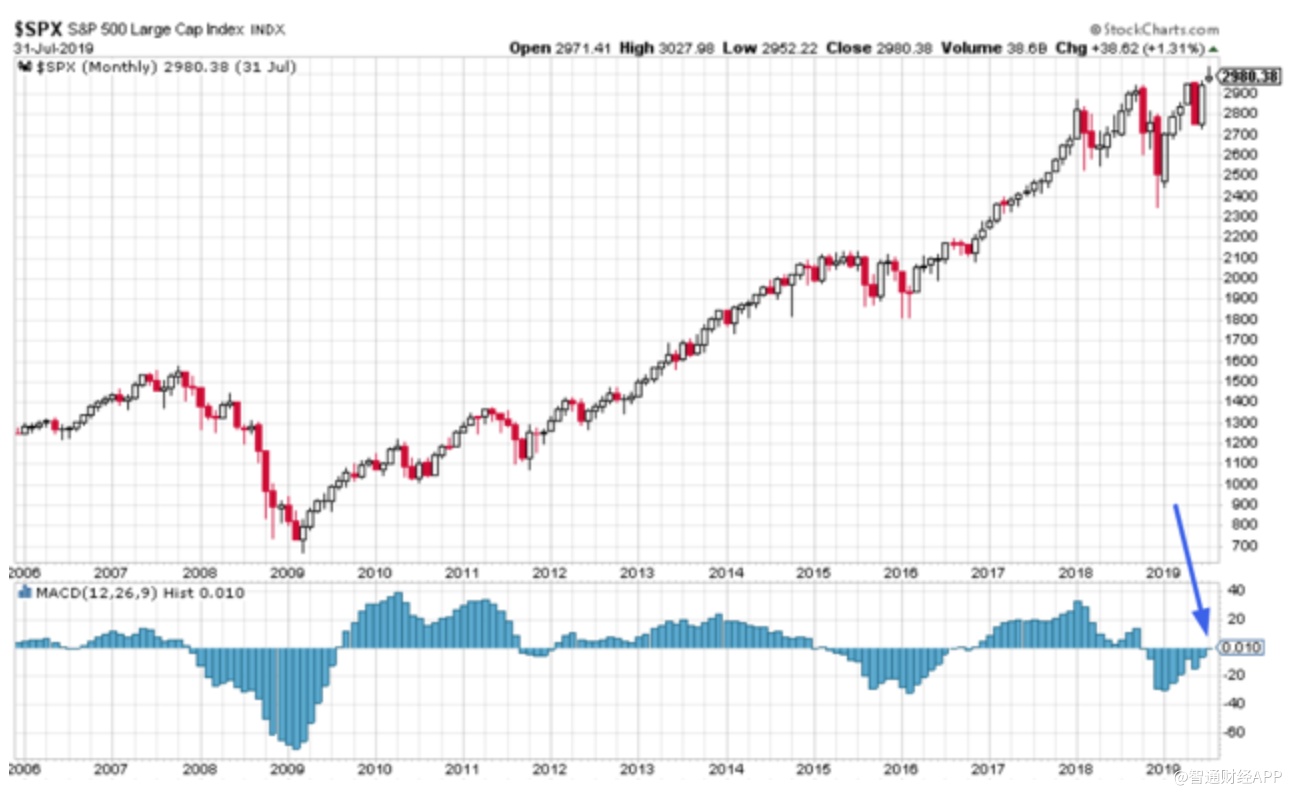 从长期趋势来看,标普500的月度MACD柱状图在半年多的时间里一直呈负增长。