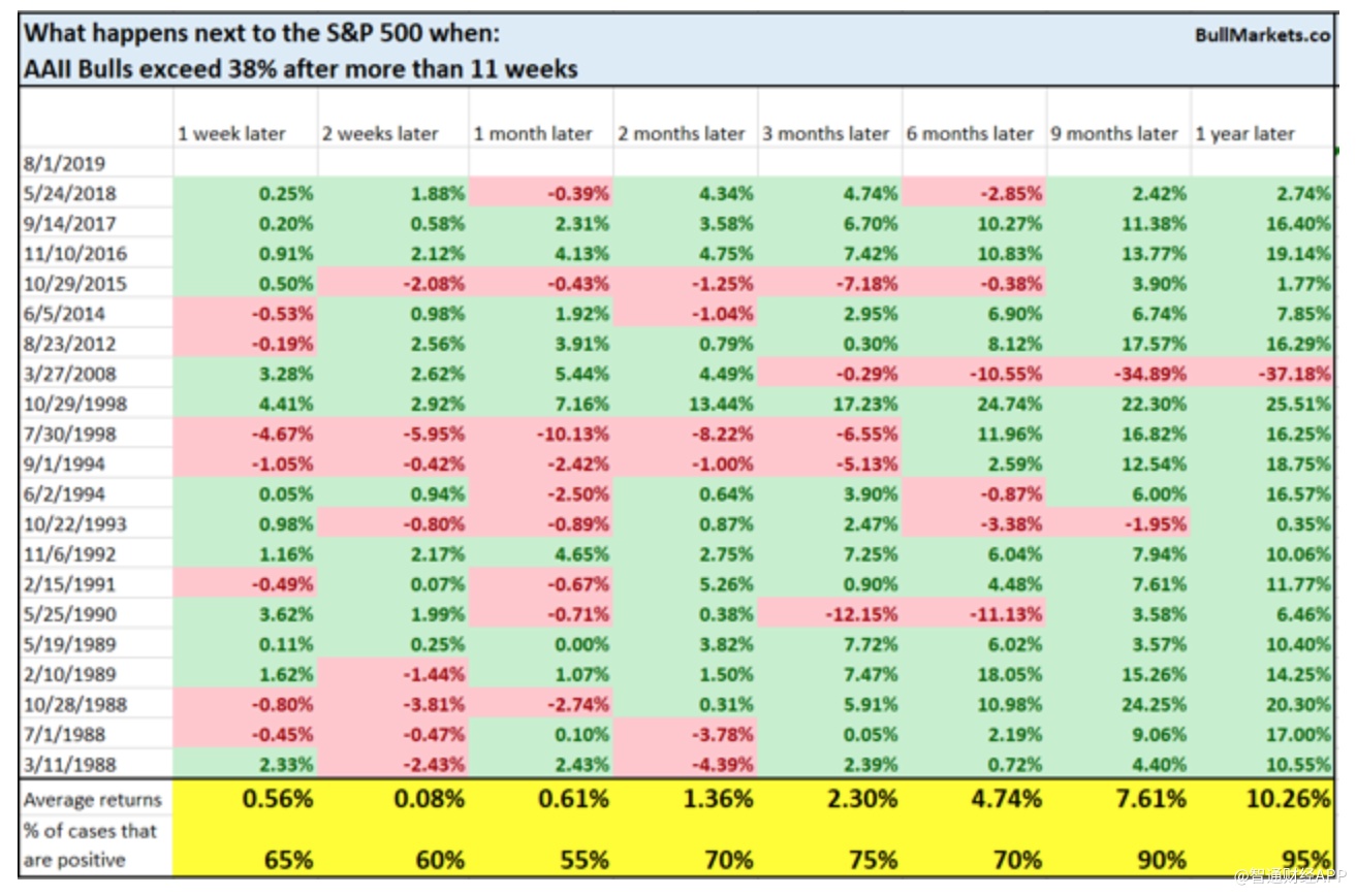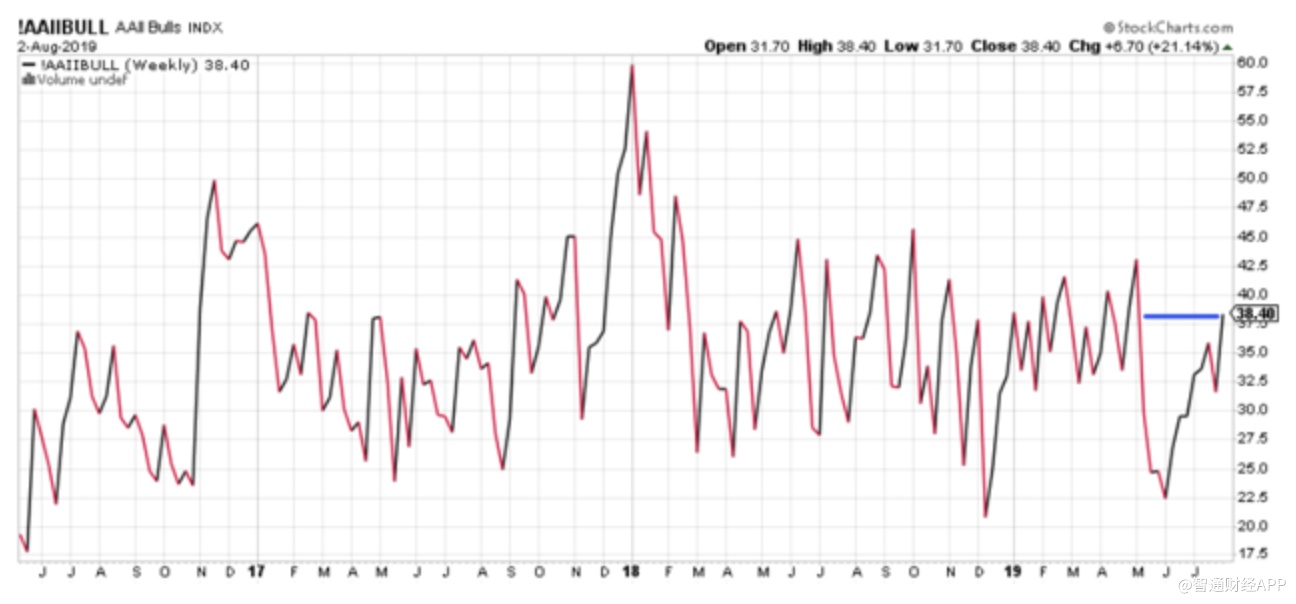 AAII(美国个人投资者指数)不是最好的情绪指标,但它很受欢迎。看涨情绪正在上升。AAII公牛在11周内首次超过38%。