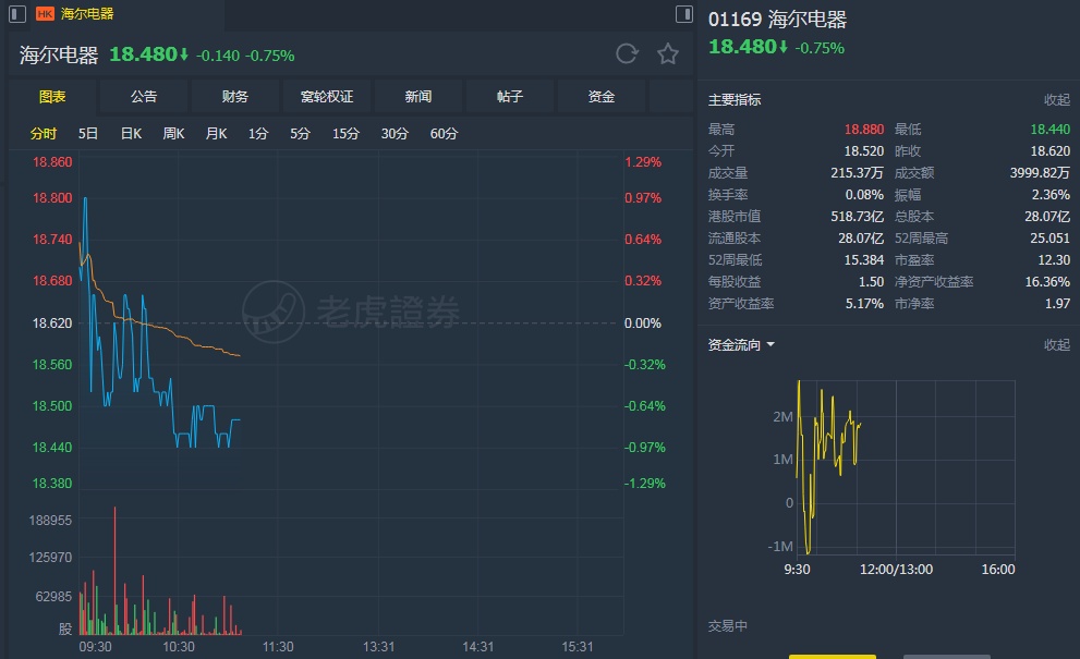该行表示,海尔将于本月底公布中期业绩,估计其今年洗衣机及热水器收入与去年同比有低至中单位数字增长,渠道服务收入同比有中单位数字增长。整体而言,预计其上半年收入同比下降1%至418亿元人民币,净利润年同比增加8%至18亿元人民币。基于预期海尔收入增长疲弱,该行下调对其2019至2021年盈利预测4至7%。