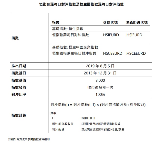 恒指欧罗每日对冲指数及恒生国指欧罗每日对冲指数