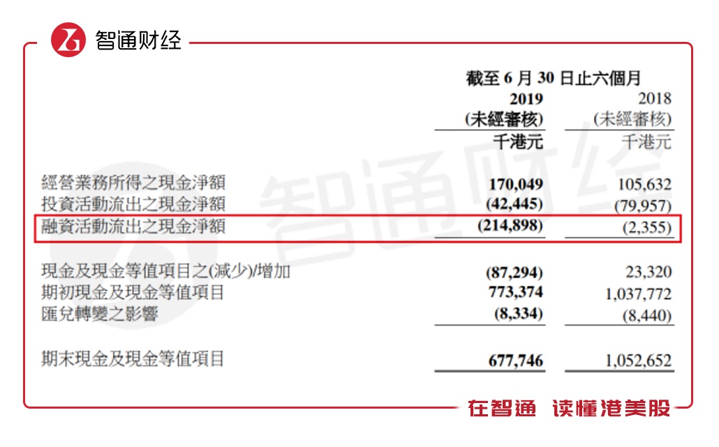 其他方面,公司总资产净值于2019年中期减少1亿港元至43.22亿港元,期末现金及现金等价物同比减少55.3%至6.78亿港元,主要受到融资活动现金净额大幅减少影响。