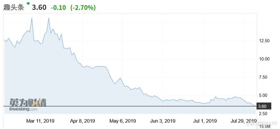 智通财经APP获悉,周一美股收盘,趣头条(QTT.US)跌2.7%,报3.6美元。盘中,趣头条震荡至自上市以来新低,低见3.47美元,较其一年内最高价20.39美元缩水近8成,目前总市值为10.26亿美元。