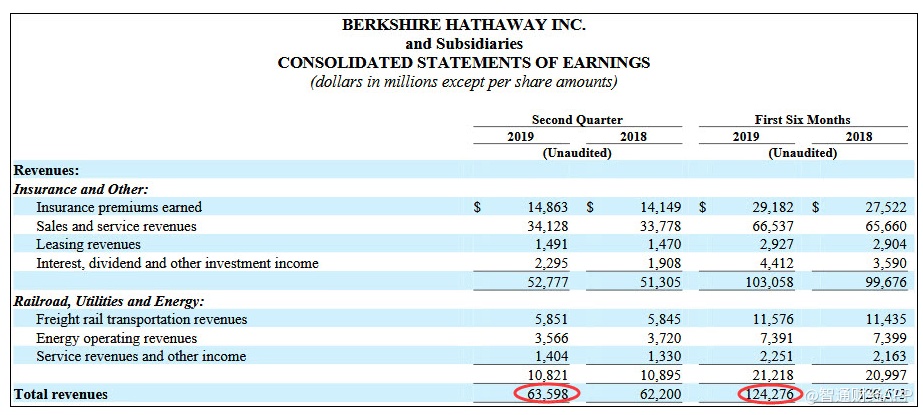 8月3日,伯克希尔哈撒韦发布了2019财年二季度及上半年业绩。