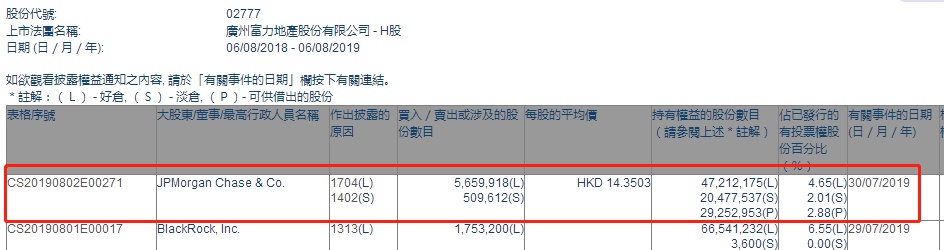 智通财经APP获悉,联交所最新资料显示,7月30日,摩根大通减持富力地产(02777)566万股,每股作价14.35港元,总值为8122.1万港元,最新持股数目约为4721.22万股,最新持股比例为4.65%。