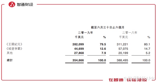 从收入构成上可以看到,期内《王国纪元》收入2.82亿美元,收入占比79.5%,《城堡争霸》收入0.45亿美元,收入占比12.6%。与去年同期相比,两款游戏收入分别同比下滑9.3%及21.7%,由此可见,总收入的下滑主要是因为这两款游戏的收入下滑导致。