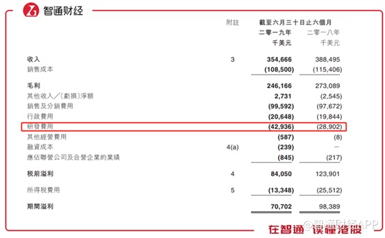 智通财经APP注意到,由于收入减少的原因,毛利同比下滑了9.9%至2.46亿美元,然而税前溢利同比下滑32.3%,就要“归功于”研发费用的高增长了。