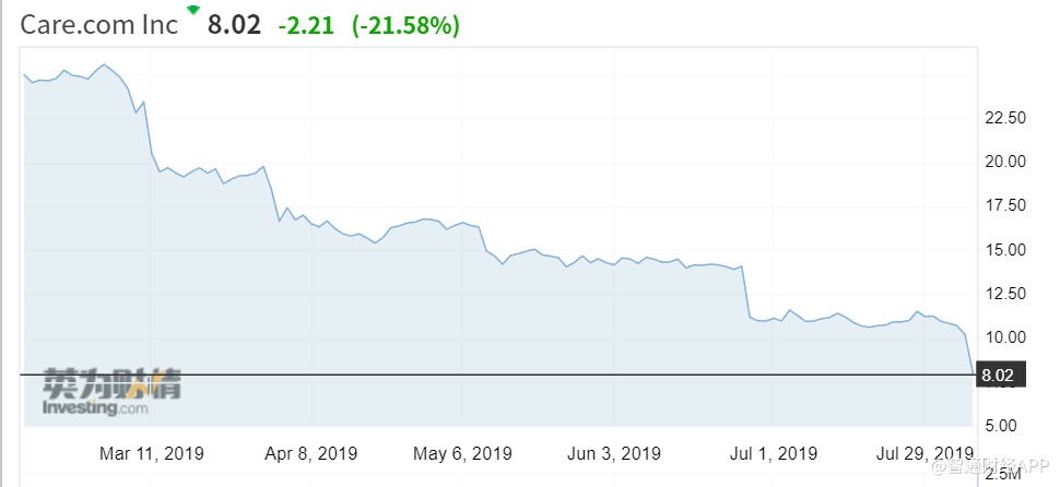 智通财经APP获悉,周二美股盘初,在线家庭护理服务商Care.com, Inc(CRCM.US)跌超20%,报8.02美元。