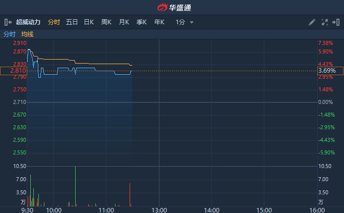 智通财经APP获悉,此前超威动力(00951)发布公告称,预期2019年中期股东应占利润不少于2.50亿元。截至发稿,涨3.32%,报2.8港元,成交额137.62万港元。