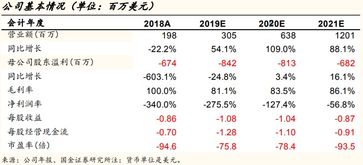 公司是一家尚未盈利的抗肿瘤创新型制药企业,预计未来三年营业收入约3.1/6.4/12亿美元。我们通过DCF的估值方法对公司进行估值定价,我们认为公司合理估值约80-100 亿美金。
