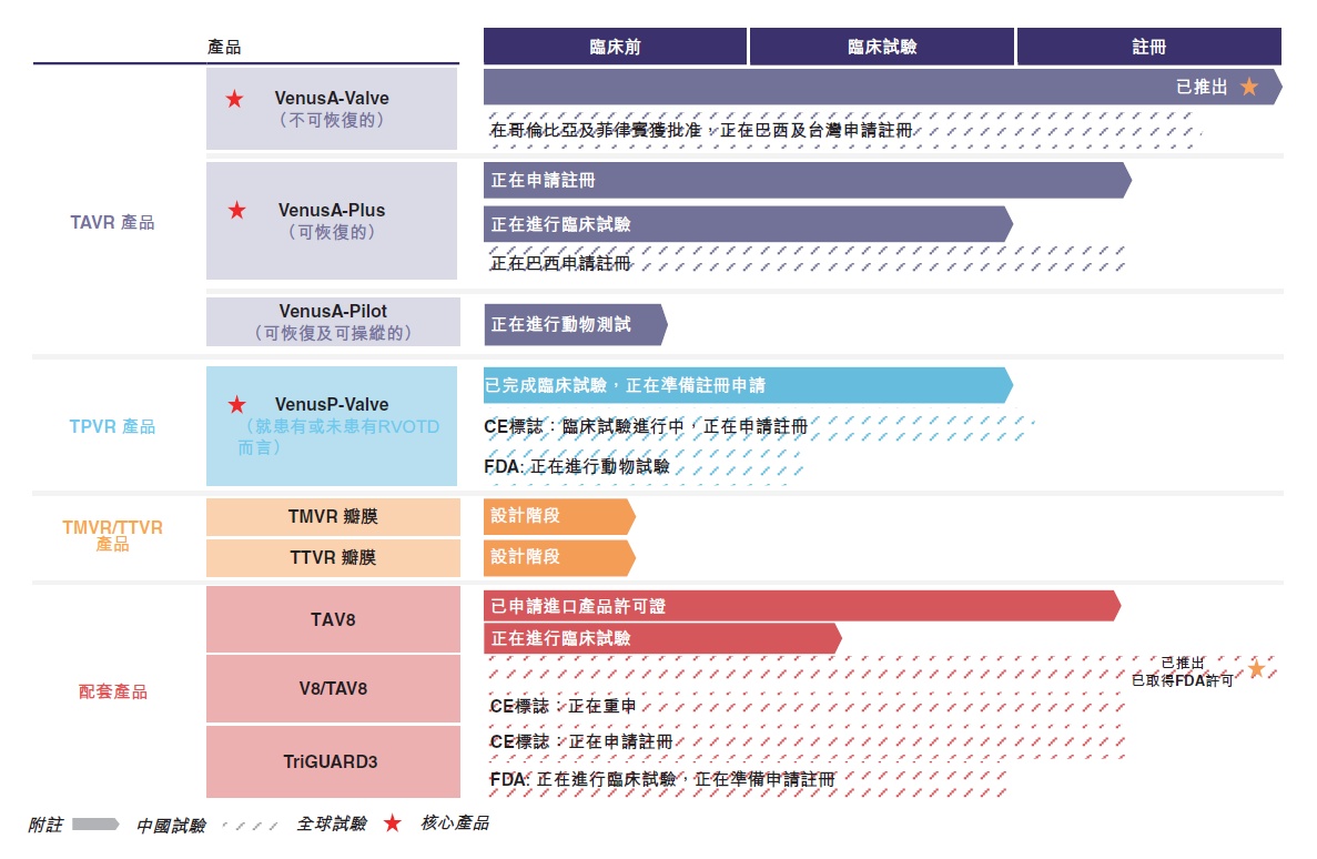 比如拥有303项专利,其中发明专利274项,实用新型29项,有效PCT申请13项。在中国、美国、欧洲、日本、加拿大、俄罗斯、印度、巴西、韩国、南非等国家已获授权及生效专利146项,其中130项为发明专利;而在研项目,如TAVR系列,Valve(已获批上市)、Plus、Pilot等。