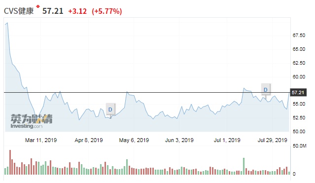 智通财经APP获悉,8月7日美股开盘,CVS健康(CVS.US)涨5.77%,报57.21美元。