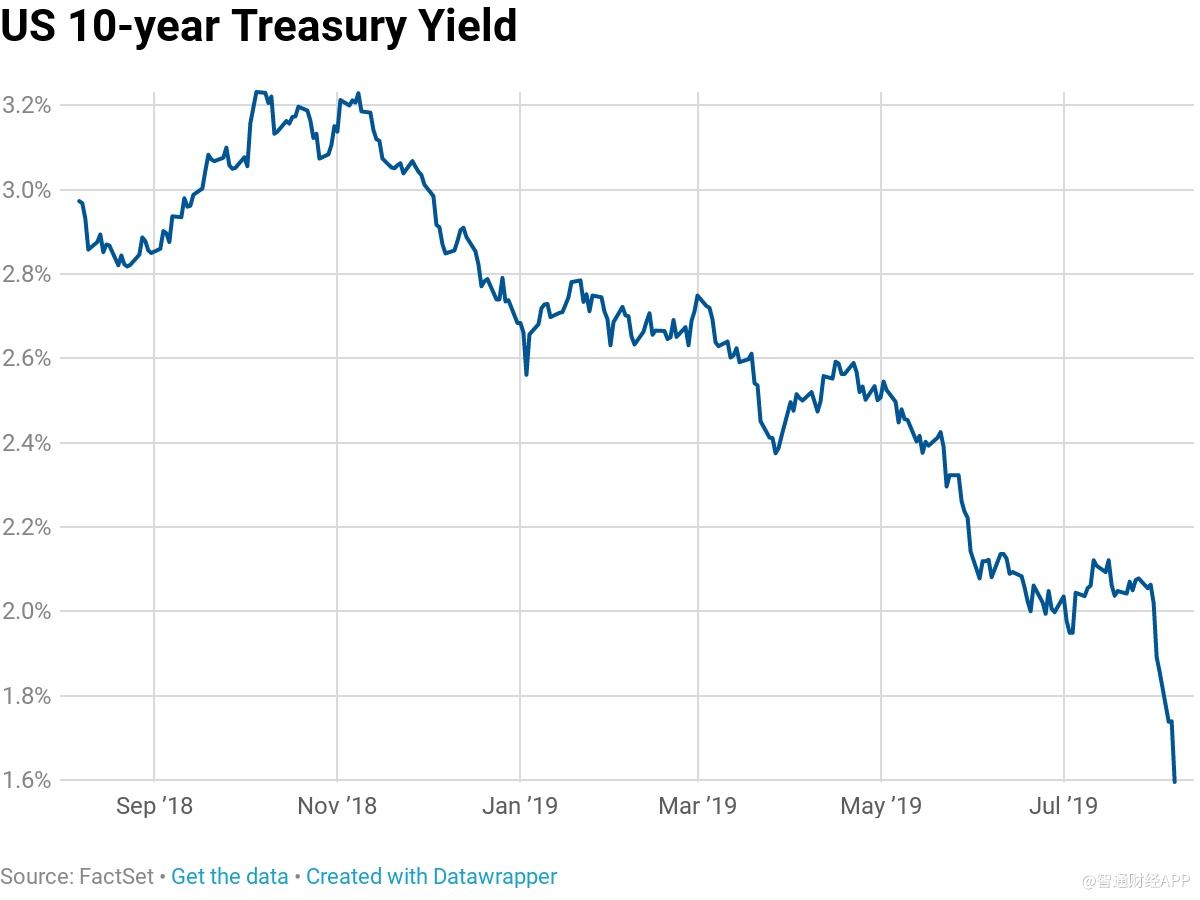 智通财经APP获悉,周三,投资者仍在继续抛售股票,将资金转移到债市。因资金大量涌入全球债市,10年期美国国债收益率下降至1.595%,为2016年球季以来的最低点,比一个月前的水平低约40个基点,仅8月就下跌超过35个基点。30年期美国国债收益率在2.12%附近徘徊,接近2016年的历史最低点。